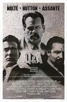 Q & A is a 1990 American crime film written and directed by Sidney Lumet, based on a novel by New York State Supreme Court judge Edwin Torres. It stars Nick Nolte, Timothy Hutton, Armand Assante and Lumet's daughter, Jenny Lumet.