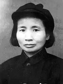 Qian Ying was born in Qianjiang County, Hubei.[1] From 1923, she lived in Wuhan, where she studied at the Hubei Women's Normal School. She became a member of the Chinese Communist Party in 1927.[1] From September 1954 to April 1959, she was Minister of Supervision of the People's Republic of China.[2] In 1972, during the Cultural Revolution, she was refused medical treatment and died in 1973 from lung cancer. She was rehabilitated in 1978.[3]