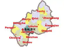 - ↑ 行政区划 [Administrative Divisions]. qichun.gov.cn (in Chinese). Qichun County People's Government. Archived from the original on 2020-04-25. Retrieved 2023-01-20.