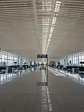 Qingdao Jiaodong International Airport (IATA: TAO, ICAO: ZSQD) is an international airport serving the city of Qingdao in Shandong province, China. It received approval in December 2013, and replaced Qingdao Liuting International Airport as the city's main airport.[3] It is located in Jiaodong, Jiaozhou, 39 kilometres (24 mi) from the center of Qingdao.[2] The airport opened on 12 August 2021[1] and is currently the largest airport in Shandong, capable of handling 35 million passengers annually.[4]