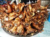 A 19th-century recipe from California for Codornices a la española (Spanish-style quail) was prepared by stuffing quails with a mixture of mushroom, green onion, parsley, butter, lemon juice and thyme. The birds were brushed with lard, bread crumbs and beaten eggs and finished in the oven. A savory pie could be made with quail, salt pork, eggs and fresh herbs.[3]