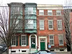 The Quaker Hill Historic District is a national historic district located at Wilmington, New Castle County, Delaware. It encompasses 151 contributing buildings in a residential neighborhood west of the central business district of Wilmington. The district includes 19th-century residential structures of all classes, along with several 19th-and 20th-century commercial structures. The predominant structures are three-story rowhouse dwellings in a variety of popular styles including Second Empire, Italianate, and Gothic Revival. Notable non-residential buildings include the Quaker Meetinghouse and Cemetery, St. Peter's Cathedral and Rectory (1816), Union Methodist Church, and New Mount Bethel Baptist Church [2][3]