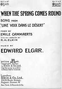 ”Quand nos bourgeons se rouvriront” ("When the spring comes round") is a song for solo soprano, part of a staged recitation with orchestra Une voix dans le désert written by the English composer Edward Elgar in 1915. The words are by the Belgian poet Émile Cammaerts.