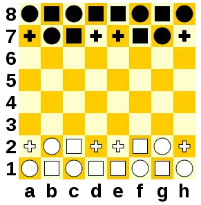 The starting position of Quantum on an 8 by 8 board