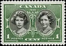 Canada has depicted its sovereigns on stamps since 1851; that tradition continues into the present day. Since 1939, the image of Queen Elizabeth II has appeared on 59 stamps issued in Canada, most of them definitives.[1][2] Canada Post spokesperson Cindy Daoust was quoted as stating that stamps bearing the image of the Queen now "outsells other stamps, ten to one, whether it's a commemorative edition or definitive one."[3]