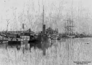 After the formation of the Queensland Maritime Defence Force in 1884, the colonial government purchased two gunboats and a torpedo boat to equip the new force.[1] However, given the number of ports along the Queensland coast, it was realised that additional ships were required. Five ships had already been ordered for the Queensland Department of Harbours and Rivers when the decision was taken to convert them to also serve as auxiliary gunboats. This resulted in the fitting of a 5-inch gun and the relocation of the boilers below the waterline. The ships were as follows: Bonito, Bream, Dolphin, Pumba, and Stingaree.[2]