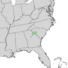 Quercus oglethorpensis is endemic to the southeastern United States, found only in the Piedmont of Georgia and South Carolina, and in Alabama, Louisiana and Mississippi.[1][2][4][6]
