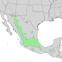 It is widespread in Mexico, Guatemala and the southwestern United States (Arizona, New Mexico, western Texas).[6][7][8][9][10] It grows extensively in the temperate highlands of central Mexico, particularly on hillsides and in narrow gorges, between 1,800 and 2,900 meters elevation.[1] It is associated and usually coexists with other oaks, alders, pines and Texas madrones.