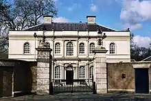 The site was formerly occupied by Bedford College. The college merged with the Royal Holloway College and moved to Egham in Surrey to become Royal Holloway, University of London, having previously been based at Hanover Lodge. The creator of the Regent's Park, the 19th-century architect John Nash, had intended to construct 48 villas in the park, but only eight were eventually constructed before 1826 when work on his scheme was stopped by the government.[2] In 1987 the Regent Park's Crown Estate Commissioners commissioned the Neo-Classical English architect Quinlan Terry to build six detached villas that echoed the style of Nash. Terry said in a 2002 interview that the Crown Estate had told him to "step into Nash's shoes and carry on walking".[1] Prior to the villas' construction Terry had said also that it was a "glorious opportunity to tidy up a superb site"[3] The villas were constructed from the late 1980s to 2002.[1]