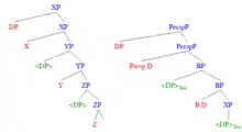 - The heads are marked [⋆nom⋆] (nominative DPs only), [⋆dep⋆] (dependant-case and nominative DPs), and [⋆d⋆] (any DP).