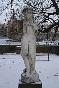 Réva (English: Wine), or Dívka s hrozny (English: Girl with grapes), is an outdoor statue, installed in 1960 at Kampa Park in Prague, Czech Republic. The statue is a typical work of Karla Vobišová-Žáková, the first Czech professional female sculptor, aimed to figural and portrait sculptures. The almost life-size statue was created from Carrara marble, the piedestal from sandstone. The statue is separately registered and protected as a cultural monument since 1964. The last restoration was made in 1997.