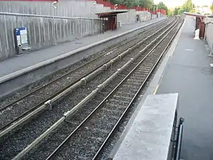 Røa is a station on Røa Line (Line 2) of the Oslo Metro, located in the Vestre Aker borough, 7.5 kilometers (4.7 mi) from Stortinget. The station is located between the stations of Hovseter and Ekraveien. The station is part of the old western suburban rail network and was opened on 24 January 1935, slightly to the west of the current location.[1] Up until 1951 it was the terminus station, but the line was extended to Grini in 1948 and to Østerås in 1972.[2]