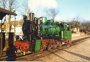After the RüKB was taken over by the Deutsche Reichsbahn in 1949, the three engines were given the new running numbers 99 4631 to 99 4633. In 1992 nos. 99 4632 and 4633 were given new boilers and cylinders at Raw[1] Görlitz. Both locos were finally in service in the original green RüKB livery as locomotives 52 and 53 Mh. No. 99 4631 became a monument from 1984 to 2002 at Lehrte but is now back with the RüKB, the others are still in operation as before on the island of Rügen. No. 99 4632 phase been working in black Reichsbahn colours since 2003.