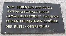 The Rütli School gave rise to a circle of resistance fighters in Nazi Germany, the most famous of which was Hanno Günther. The Rütli School was closed down by the Nazis and served as a military hospital. It was reopened in 1945.