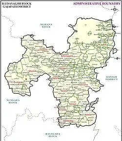R. Udaygiri is a village as well as tehsil and a community development block in the Gajapati District of Odisha. It is located 60 km from Paralakhemundi.