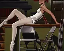 Since the 1990s, he has painted his work in a studio in Pasadena, California, first in Old Town,[5] then at the Castle Green, and now in West Pasadena near the Arroyo.[1][2][6] His early influences include the photographer Louise Dahl-Wolfe, American advertisements from the 1950s, Fred Astaire and Alfred Hitchcock, as well as the writings of John Cheever, F. Scott Fitzgerald and Raymond Carver.[4][6] He also credits David Alfaro Siqueiros, Bartolomé Esteban Murillo, and José Clemente Orozco, as well as Edward Hopper.[4][6] Like Hopper and Grant Wood, he paints "narrative realism," set in California. His work "captures a Southern California where Walt Disney and Raymond Chandler collide."[5] His paintings are influenced by Depression-era American artists like Edward Hopper and Grant Wood, as well as Mexican modernists like his great-uncle Roberto Montenegro.[5] He is best known for his oil paintings, but has also had exhibitions of watercolor paintings and mosaic murals.