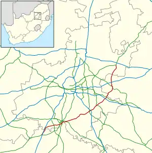 The R42 is a provincial route in South Africa that connects Vanderbijlpark with Bronkhorstspruit via Vereeniging, Heidelberg, Nigel and Delmas.[1]