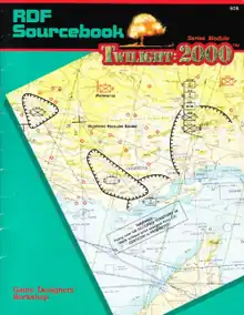 GDW published the post-apocalyptic role-playing game Twilight: 2000 in 1984 that posited a nuclear war between the United States and the Soviet Union that was followed by a conventional war. It is in the world of the conventional war that the role-playing takes place. GDW published a number of adventures and supplements for the system, including RDF Sourcebook, a 48-page softcover book written by Frank Frey, with Loren Wiseman and Frank Chadwick, with interior art by Tim Bradstreet and Liz Danforth, and rear cover art by Steve Venters. It was published by GDW in 1986.[5]