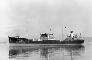 In April 1942 she was assigned to the British Eastern Fleet at Ceylon. She took part in Operation Stab and spent the next three years fuelling and escorting convoys across the Indian Ocean. On 14 April 1944 she sustained minor damage from the explosion of the ammunition ship Fort Stikine, and then in August was accidentally torpedoed by the submarine HMS Severn, rupturing two tanks and killing one.[1]