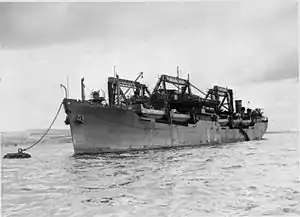 Taken over by the Admiralty and completed as a Landing Ship Gantry carrying 15 LCMs with accommodation for 150 military personnel. Took part in the North African, Italian, and Far East landings.