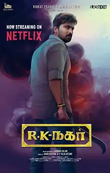 RK Nagar is a 2019 Indian Tamil-language political satire film written and directed by Saravana Rajan. The film stars Vaibhav, Sana Althaf, and Anjena Kirti, while Sampath Raj and Inigo Prabhakaran and Uriyadi Chandra Kumar play supporting roles. Featuring music composed by Premgi Amaren, the film released on 17 December 2019 on Netflix even though it aimed to have a theatrical release.