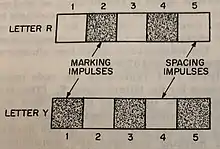 This signal pattern also provided a test for signal polarity; if polarity was reversed, the test signal would print as "SG".[2]