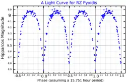 A light curve for RZ Pyxidis, plotted from Hipparcos data[1]
