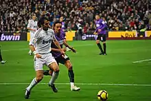 A prolific goalscorer and a highly creative forward, Raúl is regarded as one of the greatest and most consistent forwards of his generation.[75][76][77] Wearing the number 7 jersey for most of his club and international career, he was capable of playing anywhere along the front line, although he was primarily deployed as a centre-forward, or as a supporting striker.[78] He was also capable of playing as a number 10 behind the forwards,[79] and was even used out of position as a left winger by manager Fabio Capello during the 1996–97 season.[80] Raúl was a quick, left-footed player, who was capable of scoring both in and outside the penalty area with his accurate and powerful shot,[78] and had a penchant for scoring goals from chips.[81] He possessed excellent ball control, vision and technical ability, and was effective in the air as well.[78]