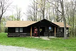 Along with two other Pennsylvania state parks, Raccoon Creek State Park was established as a Recreational Demonstration Area during the Great Depression. Its earliest buildings, constructed by the Civilian Conservation Corps in 1935, are split among four areas: three group camps and a headquarters/maintenance complex.[7]: 1, 2 Built in the National Park Service Rustic style,[7]: 16 these buildings were added to the National Register of Historic Places in 1987 as a historic district;[4] a total of 114 buildings and structures qualified as contributing properties.[4] The district was added to the Register for several significant reasons: besides their distinctive architecture and their role as parts of a recreational area, the buildings reflect the federal government's attempts to resolve the poverty of the Depression through political means.[7]: 16