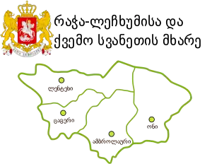 Racha-Lechkhumi and Kvemo Svaneti (Georgian: რაჭა-ლეჩხუმი და ქვემო სვანეთი, Rach’a-Lechkhumi da Kvemo Svaneti) is a region (mkhare) in northwestern Georgia with a population of 28,500 (2021[2]), making it the most sparsely populated region in the country. It has a nominal area of 4,954 km2 (1,913 sq mi), of which 4,600 km2 (1,800 sq mi) is de facto controlled by Georgia.[4] The remainder is effectively under South Ossetian control.[nt 2] The region has Ambrolauri as its administrative center and Parmen Margvelidze is governor of the region since June 2021.[5][6] Racha-Lechkhumi and Kvemo Svaneti includes the historical provinces of Racha, Lechkhumi and Kvemo Svaneti (or Lower Svaneti).