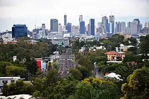 Queensland Rail operates ten suburban and three interurban lines in South East Queensland, which are all electrified. Centred in the Brisbane central business district, the network extends as far as Gympie in the north, Varsity Lakes in the south, Rosewood in the west, and Cleveland in the east to Moreton Bay.[1]