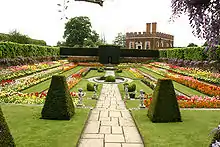 The term sunken garden usually refers to a formal traditional English garden where the garden is lower than the surrounding land, and may have multiple terraces around it and steps leading down to the garden.[9]