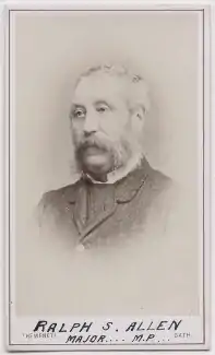 Ralph Shuttleworth Allen (1817 – 6 February 1887)[1] was a British Conservative Party politician. He was elected as a Member of Parliament (MP) for East Somerset at the 1868 general election,[2] was re-elected unopposed in 1874, and held his seat in the House of Commons until he resigned on 10 March 1879 by becoming Steward of the Manor of Northstead.[3]