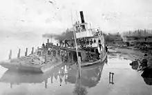 April 22, 1909. Steamship Ramona, plying on Fraser river, while returning to New Westminster, when near Wharton's landing, ran on a snag, striking her amidship on port side. She immediately sank becoming a total loss.[13]