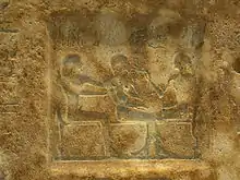 Ramose is known from a few contemporary sources. He appears on the false door[3] and likely, also on the chapel of Senenmut's TT71 tomb chapel. Ramose and Hatnofer's tomb was not located far from the chapel (TT71) of his son Senemut. The tomb of Ramose contained his mummy as well as that of Hatnofer (Hatnefret), who was the wife of Ramose and the mother of Senenmut. It was found intact by Wiliam Hayes and Ambrose Lansing of the Metropolitan Museum's Egyptian expedition in excavation work conducted under a hillside terrace at Sheikh Abd el-Qurna hill in Western Thebes during the 1935-1936 archaeological season.[4] Ramose and Hatnofer were buried in the tomb along with six other anonymous poorly wrapped mummies (three women and three unknown children) who are assumed to be family members of the couple.[4] Initially, Lansing and Hayes interpreted the 6 bodies as grisly evidence that Senenmut's family had been struck by a sudden tragedy: