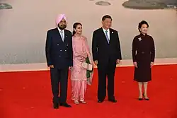 In September 2023, Singh traveled to Hangzhou for the 2022 Asian Games.[42][43] On 22 September 2023, he met with Paramount leader and Chinese President Xi Jinping, and other senior Chinese politicians which included Cai Qi, Ding Xuexiang, Wang Yi and Shen Yiqin, one day before the opening of the games.[44] On 23 September 2023, Singh addressed the crowd during the opening ceremony of the games at the Hangzhou Olympic Sports Expo Center.[45] On 8 October 2023, Singh declared the 19th Asian Games closed in the presence of Chinese premier Li Qiang and other dignitaries during the closing ceremony.[46][47]