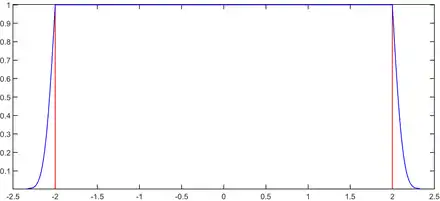 An RFV can be seen in the figure. The external membership function is the distribution in blue and the internal membership function is the distribution in red. Both the membership functions are possibility distributions. Both the internal and external membership functions have a unitary value of possibility only in the rectangular part of the RFV. So, all three conditions have been satisfied.