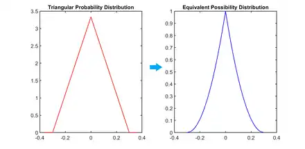 Triangular distribution in probability and possibility.