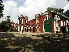 Rangpur, a city of history and heritage is located in the northwestern part of Bangladesh.[3] Begum Rokeya University and Rangpur Cadet College are situated in the southern part of the city. Previously, Rangpur was the headquarters of the Greater Rangpur district. Later, the Greater Rangpur district was broken down into the Gaibandha, Kurigram, Lalmonirhat, Nilphamari and Rangpur districts. In the greater Rangpur region, little economic development took place until the 1990s, mainly because of the yearly flooding the region used to see before the building of the Teesta Barrage. Coal is found near this district. There is a large military cantonment in the vicinity of the city, along with a Ghagot park (under military surveillance), in addition to the famous Carmichael College Tajhat Palace, Ciklee water park and Rangpur Zoo in the city. Rangpur is also famous for its handicrafts industry like Shataranji which is recently declared as a GI product of Bangladesh.[5]