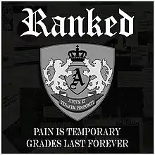 Ranked is a musical written by David Taylor Gomes (music and lyrics) and Kyle Holmes (book), known as "Holmes & Gomes". The musical focuses on a dystopian world where academic competition defines each student's worth, and students do whatever it takes to get to the top of the leaderboards, including paying for their grades. Holmes & Gomes started writing in the spring of 2018, and Ranked debuted on April 4, 2019 at Granite Bay High School just weeks after the 2019 college admissions bribery scandal broke, launching the show into a national spotlight.[1][2] The musical is the subject of the 2022 HBO feature documentary "My So-Called High School Rank.[3]"