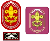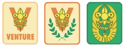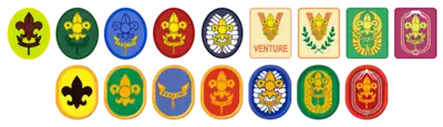 previous version for Scout section; knot (still in use), present version for Venture section