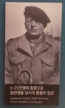 Raoul Charles Magrin-Vernerey, also known as Ralph Monclar (born 7 February 1892, died 3 June 1964) was a French officer and 2nd Inspector of the Foreign Legion[1] who fought in World War I, World War II within the ranks of the Free French Forces and led the French Battalion in the Korean War.[2] He was also one of the first senior officers to respond to the Appeal of 18 June.