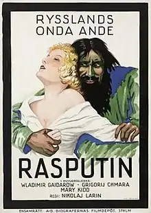 Rasputin, The Prince of Sinners[1] (German: Dornenweg einer Fürstin), or simply Rasputin, is a 1928 German-Soviet drama film co-directed by Nikolai Larin and Boris Nevolin and starring Vladimir Gajdarov, Suzanne Delmas and Ernst Rückert.[2] The film's poster showed the tagline "rysslands onda ande", which translates as "Russia's Evil Spirit". It was shot at the Johannisthal Studios in Berlin. The film's sets were designed by Carl Ludwig Kirmse. This film is sometimes confused with another 1928 German silent film made about Rasputin called Rasputin, the Holy Sinner.[1]