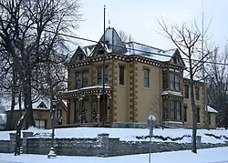 The Rau/Strong House is a historic house and accompanying carriage barn in Saint Paul, Minnesota, United States. It is located in Saint Paul's West Side neighborhood. It was built 1884–86, with an eclectic Italianate/Second Empire/Eastlake movement design featuring a mansard roof and hammered quoin blocks. The Rau/Strong House was listed on the National Register of Historic Places in 1975 for its architectural significance as a finely crafted "urban estate" representative of Saint Paul's late-19th-century middle class residences.[2]