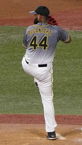 Alcántara began the 2014 season with the Double-A Midland RockHounds, but made only three starts before requiring season-ending Tommy John surgery.[4] He returned to play in 2015, making 15 starts at Class A-Advanced Stockton. He played that off season with the Estrellas Orientales of the Dominican Winter League. He began the 2016 season at Double-A, but was promoted to the Triple-A Nashville Sounds on July 20.[5] Alcántara was called up to the Athletics to make his major league debut on September 5 against the Los Angeles Angels of Anaheim.[6]