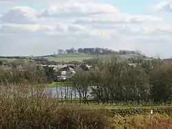 Rawdon Billing with Yeadon Tarn in the foreground, photographed from near the western end of Leeds Bradford International Airport runway