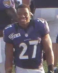 Raymell Mourice Rice (born January 22, 1987) is an American former football running back who played for six seasons with the Baltimore Ravens of the National Football League (NFL). He played college football for the Rutgers Scarlet Knights, receiving first-team All-American honors. He was selected by the Ravens in the second round of the 2008 NFL Draft. During his career, Rice was named to three Pro Bowls and was a member of the team that won Super Bowl XLVII. He is second in franchise rushing yards, rushing attempts, and rushing touchdowns, and is third in the franchise in combined touchdowns.