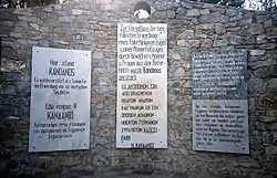 Nearby villages such as Floria and Kakopetro met a similar fate. After its destruction, Kandanos was declared a 'dead zone' and its remaining population was forbidden to return to the village and rebuild it. Finally, inscriptions in German and Greek were erected on each entry of the village. One read: Here stood Kandanos, destroyed in retribution for the murder of 25 German soldiers, never to be rebuilt again.[9]