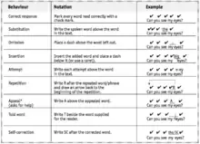 - ↑ "How to take running records" (PDF). Scholastic. Scholastic Canada Ltd. 2002. Archived (PDF) from the original on 2017-01-10. Retrieved 2016-05-13.