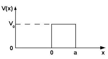 is the barrier potential with height and width . is the Heaviside step function, i.e.,